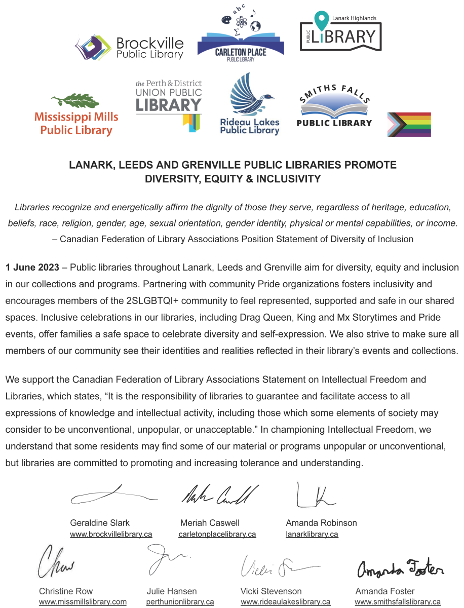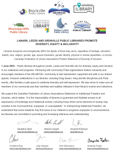 Read the joint Statement from the public libraries of Lanark, Leeds and Grenville: