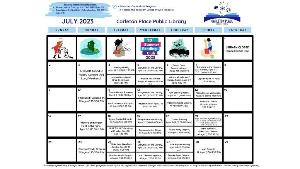 We have lots of fun things planned for summer including tons of drop ins for all ages, special events like a Magic Show, and a series of Robotics workshops at the end of summer. If you sign up for an event and can’t make it, please let us know so we can offer the space to someone else! You can download your own July calendar here, and the August calendar here.